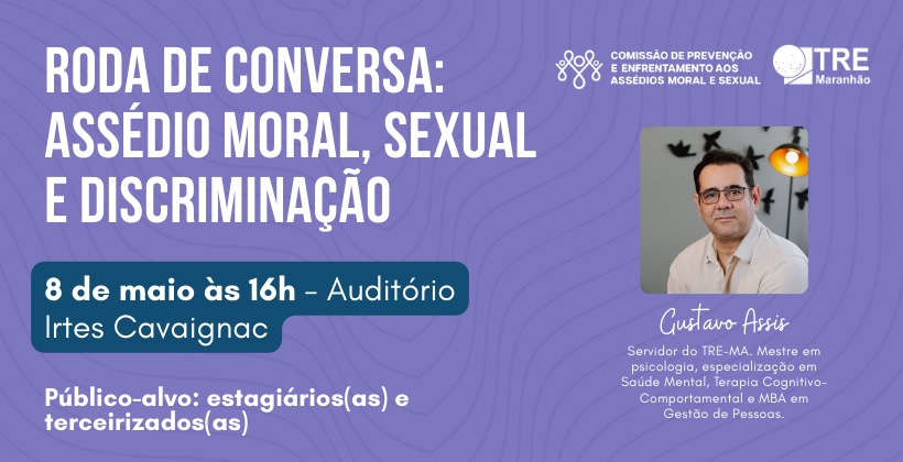 - Card Roda de Conversa : Assédio Moral, Sexual e Discriminação - com estagiários/as e terceirizados/as (formato jpg);